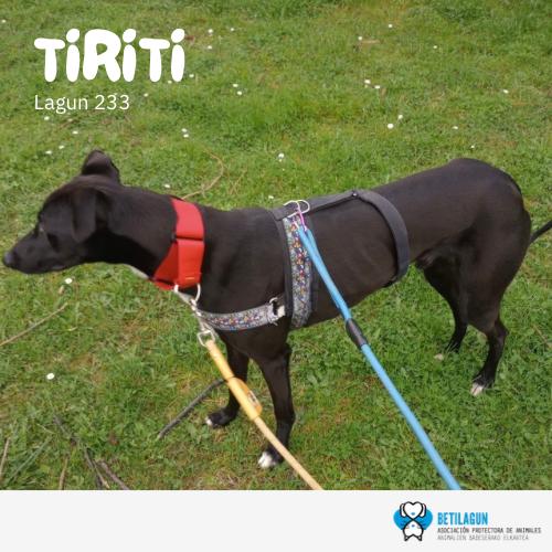 Tiriti es un galgo de alrededor de un año, muy mimoso y sociable