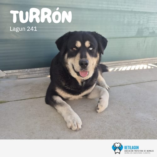 Turrón es un macho mestizo muy cariñoso. Es de tamaño grande.